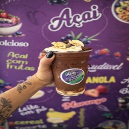 Açaí cremoso e gelado, pronto pra beber. Feito com polpa selecionada, leite, leite em pó, leite cond...
