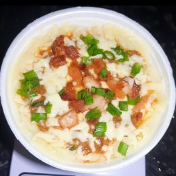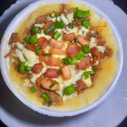 Batata recheada com carne moída ao molho sugo, requeijão cremoso e mussarela. Finalizado com bacon e...