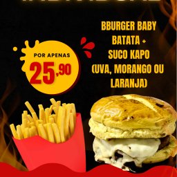 BBURGER BABY BATATA + SUCO KAPO CUVA, MORANGO OU LARANJA)