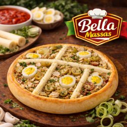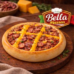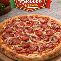 Molho de tomate, mussarela, Calabresa, queijo coalho, azeitonas,cebola e orégano