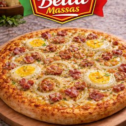 Molho + mussarela + bacon + ovos + cebola + orégano