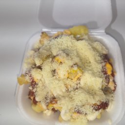 Batata frita crinkle 250 g com maionese, mostarda, ketshup e queijo ralado