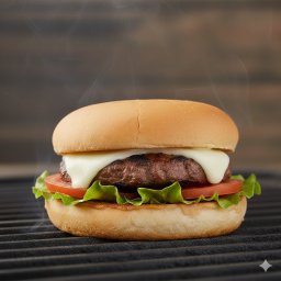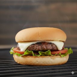 Pão, blend bovino assado 120g, queijo mussarela derretido, alface e tomate + molho maionese caseira