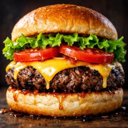 Pão, hambúrguer 1200g, queijo, bacon crocante, alface, tomate e maionese