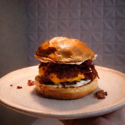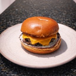 Pão Brioche, hambúrguer, duplo cheddar e maionese.