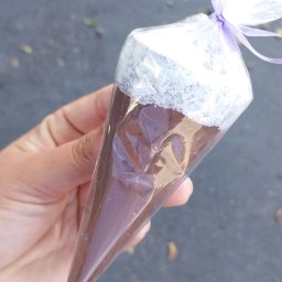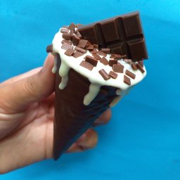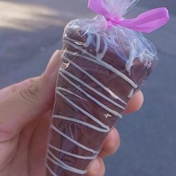 Cone de Brigadeiro Gourmet, Casquinha crocante banhada em chocolate blend, recheada com brigadeiro g...