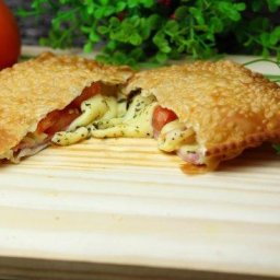 Massa crocante e dourada, recheada com queijo, presunto, tomate e orégano. Um clássico sabor pizza q...