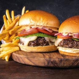 Mix: 2 Hambúrgueres Tradicionais Duplos + 2 Simples 1Porções de batata fritas de (400g ) 1 Refrige...