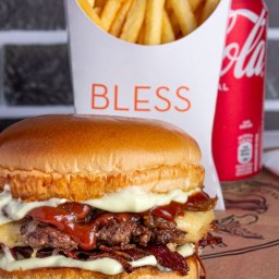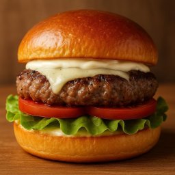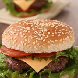 Pão , carne bovina (120g), queijo prado e maionese simples.