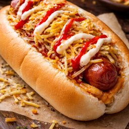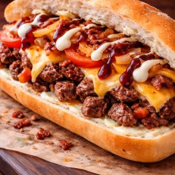Pão Frances ou Cachorro Quente, maionese, carne picadinha, tomate, cebola, muçarela, opcional chedda...
