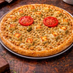 Molho de tomate, mussarela, frango, queijo coalho milho, tomate, azeitona e orégano.