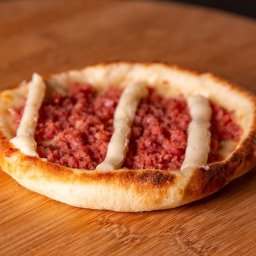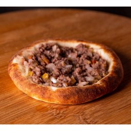 Muçarela, carne, cebola e tomate
