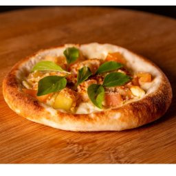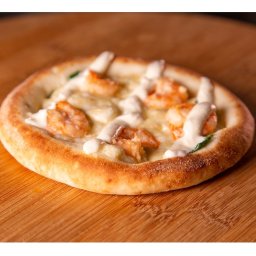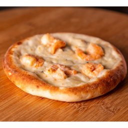 Muçarela, camarão e bacon