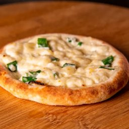 Muçarela e creme de queijo com cebolinha