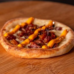 Muçarela, bacon e cheddar