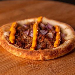 Muçarela, carne de sol e cheddar