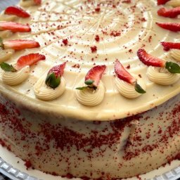 Bolo massa de Red Velvet com recheio de ninho com morango fresco!