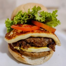 2 hambúrgueres, 2 ovos, presunto, queijo, tomate e alface
