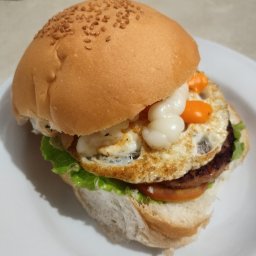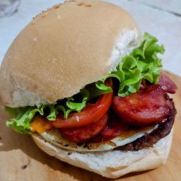 Hambúrguer, ovo, catupiry, bacon, tomate e alface