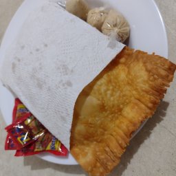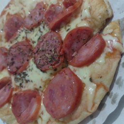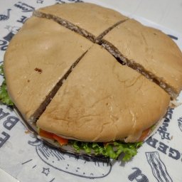 Pão árabe, hambúrguer, ovo, presunto, queijo, calabresa, tomate e alface