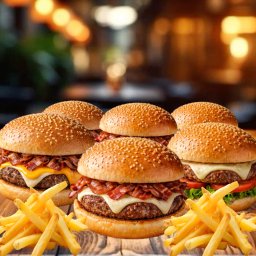 6 Lanches + Batata G: 2 Face Burguer Salada + 2 Face Burguer Bacon + 2 Face Burguer Bacon Cheddar + ...
