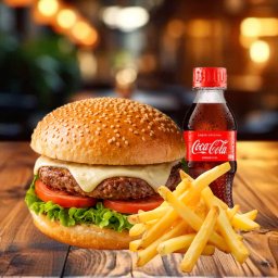 1 lanche + 1 porção batata individual + 1 coca cola pet 200ml