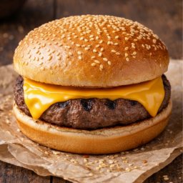 Pão de hambúrguer com gergelim, hambúrguer de picanha, mussarela, cheddar e maionese caseira.