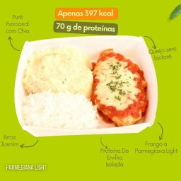 Uma versão leve do clássico frango à parmegiana, servido com arroz jasmim e purê funcional. Ingredie...