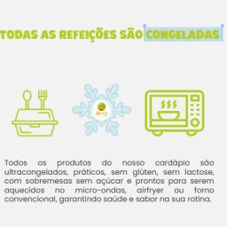 Os pedidos chegam congelados, prontos para aquecer conforme indicação nos rótulos. 🕒 Preparo rápido...