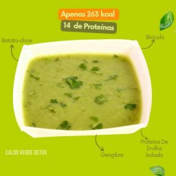 Um caldo revitalizante, com brócolis, batata-doce, salsa, alho, azeite de oliva, proteína isolada de...
