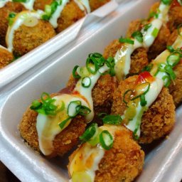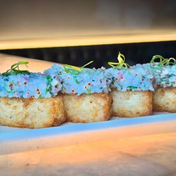 Clássico da culinária japonesa, nosso batera é feito com arroz prensado e frito com uma camada de TA...