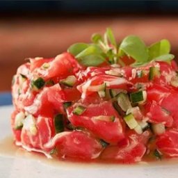 Cubos de salmão fresco marinados no equilíbrio perfeito do suco citrico , com um toque de azeite de ...
