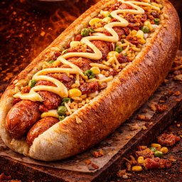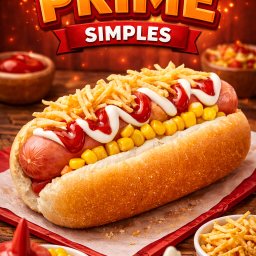 Pão, 2 salsicha, Mussarela , Milho, Batata Palha , Presunto,