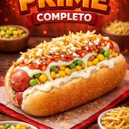 Pão,2 salsicha, Mussarela , Milho, Batata Palha , Presunto, Calabresa, Requeijão, Bacon