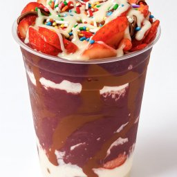 Açaí, leite ninho, nutela e morango