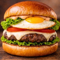 Pão, hambúrguer 150g, mussarela, ovo, alface, tomate e molho especial