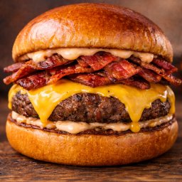 Pão, hambúrguer 150g, bacon, cheddar e molho especial