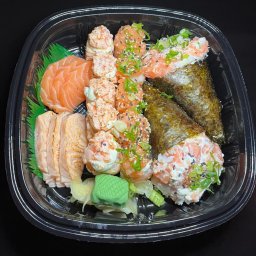 Combo Rajin, acompanha 24 peças de hot roll de salmão e um combinadinho de sushi, com 10 uramaki de ...